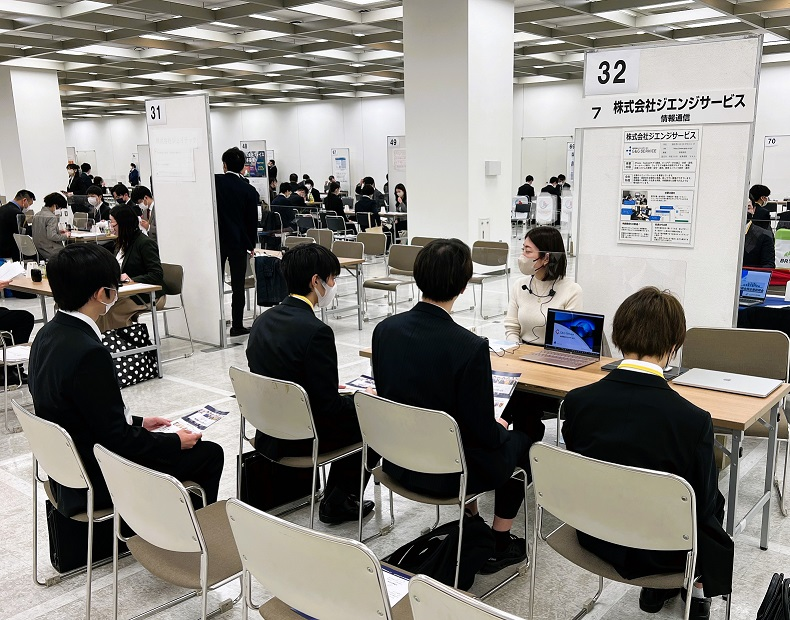 イベントホールを貸し切った大規模な説明会でしたが、当社ブースにも多くの学生様に足を運んでいただきました。